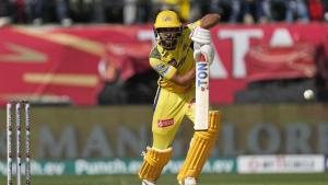 Chennai Super Kings’ Ruturaj Gaikwad plays a shot during t...