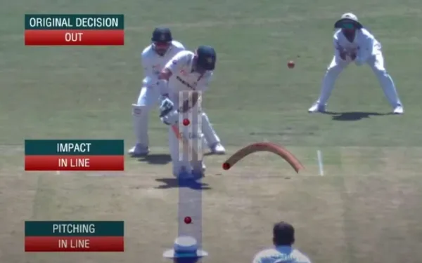 A good length delivery pitched on the middle-leg stump channel seemed as if it would drift into the batter's pads, as he had already made up his mind to tuck the ball, trying to steal a single. However, the delivery turned just a hint to miss the outside edge of Masood's willow, catching him in line of the wicket.