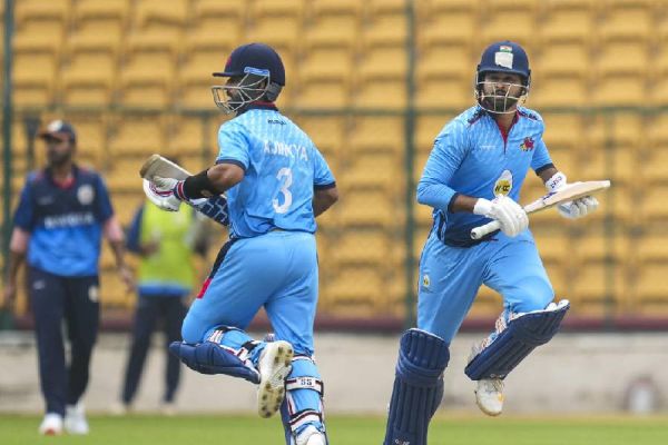 Mumbai bowlers chipped away at regular intervals as Baroda were restricted to 158 for seven, and Rahane's blistering knock off 56 balls (11x4, 5x6) took his team to 164 for four in 17.2 overs in the first semifinal.