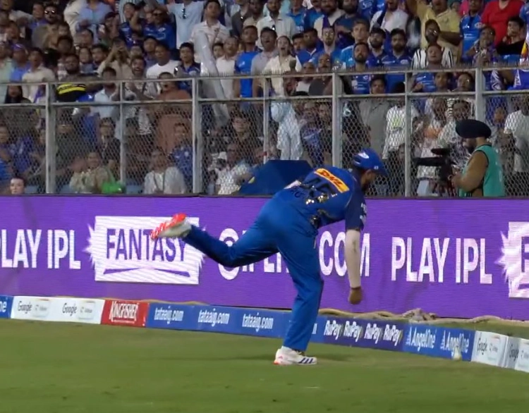Looking to go big, Raghuvanshi failed to time it perfectly, and it seemed he would get caught in the deep. However, Rohit's error allowed him a let-off.