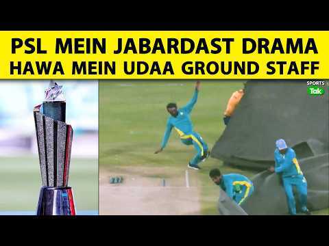 PSL: GADDAFI STADIUM BANA TALAB,TOOFAN KE CHALTE HAWA MEIN TINKE KI TARAH UDE COVER AUR GROUND STAFF